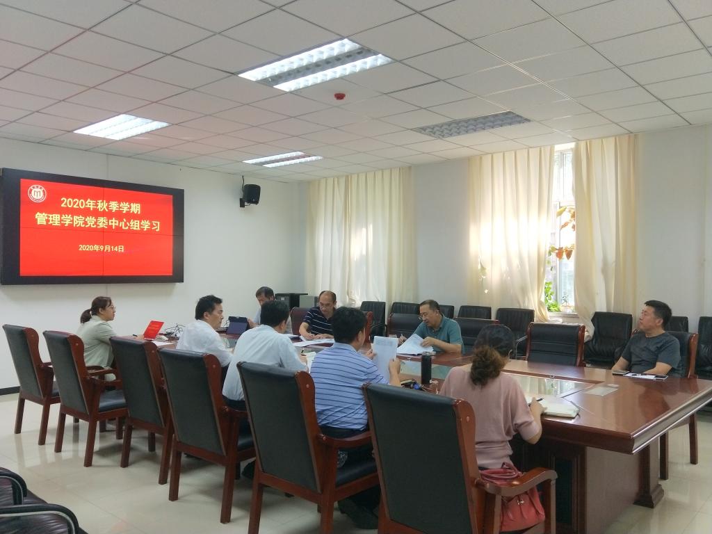 9月14日下午,在理化楼103会议室管理学院党委中心组开展了9月理论学习,院长丁日佳、副院长张瑞领学,党委书记杨庆舟、党委副书记李邦三、副院长赵学彬、尚煜、委员刘海滨、纪委委员王阳、崔艳娜参加了学习。