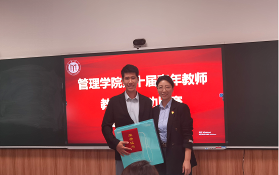 党委书记高洁为本次青教赛获奖教师颁奖,她指出,九名年轻党员教师要以此次比赛为契机,把学到的知识和经验应用到日常教学中,不断提升自身教书育人能力水平,为学院教育事业贡献更多的力量。