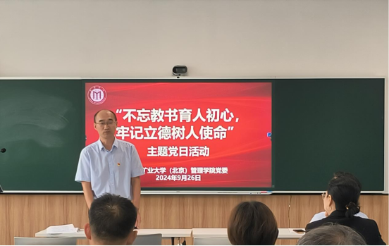 为深入学习贯彻习近平总书记在全国教育大会上的重要讲话精神,9月26日,管理学院开展“不忘教书育人初心,牢记立德树人使命”教师节主题党日活动。活动以主题报告、师德师风教育、青年教师教学基本功展示、专家现场指导为主要内容。学院党委书记高洁、院长张瑞、党委副书记李邦三出席活动,各教师支部党员教师50余人、学生骨干10余人参加活动。