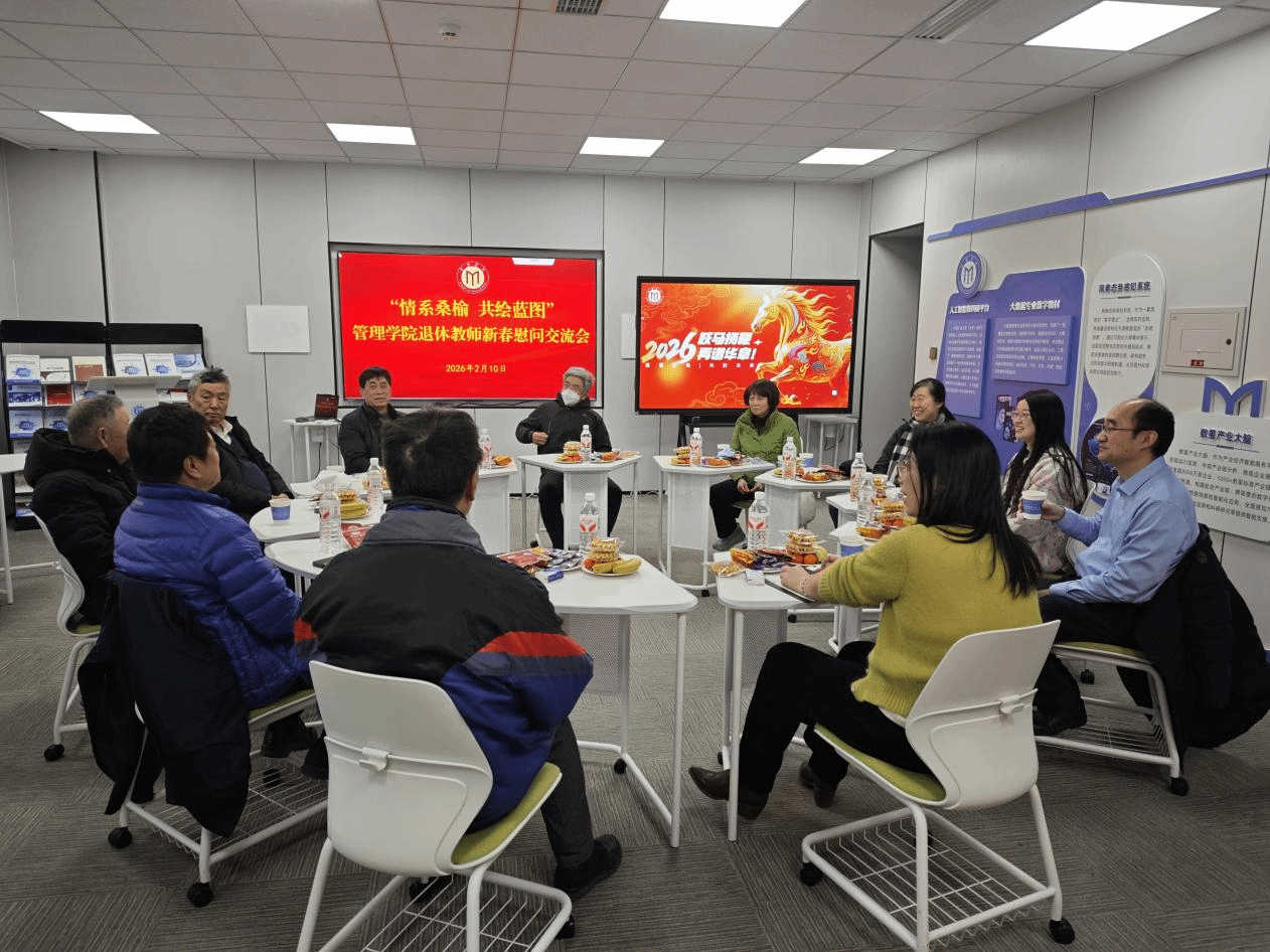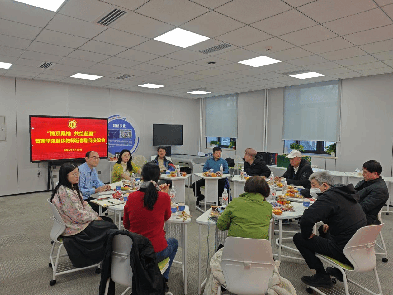 2026年2月10日,管理学院在理化楼103会议室召开退休教师新春慰问座谈会。管理学院原党委书记朱李平,原院长安景文,退休教师李元生、贾柏祥、张育才、颜秋许、李超英、彭宇参加,学院党委书记高洁、院长张瑞、办公室主任李烁玮参加慰问座谈,几代管理人欢聚一堂,共叙情谊,共话发展。