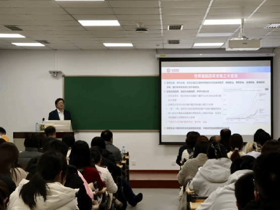 王震教授围绕“能源转型”与“中国式现代化”两大主题,系统阐述了能源在人类文明演进与经济结构变迁中的核心作用。结合详实数据,回顾了中国自加入WTO以来在经济与能源领域的快速发展,分析了中国能源结构仍以煤炭为主的基本国情,结合中海油在能源转型中的实践案例,阐述了实现“双碳”目标所面临的挑战与路径选择。他创新性地提出了新“五力模型”,鼓励管理学子培养跨学科视野、精深专业能力、技术理解力与沟通协同能力,以适应未来跨领域发展挑战。
