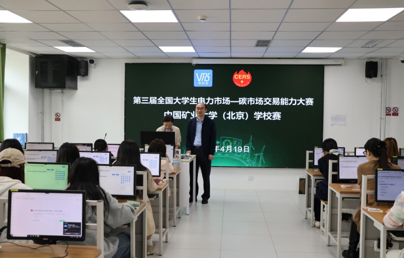 为响应国家“双碳”战略号召,深化能源经济领域专业知识与实践应用,2026年4月19日,由管理学院主持承办的第三届全国大学生电力市场-碳市场交易能力大赛中国矿业大学(北京)校赛顺利收官。本次赛事作为聚焦电力市场改革与碳资产管理的专业竞技平台,吸引了全校53支参赛队伍、共计159名同学踊跃参与。校赛在学院路校区理化楼201、202教室以机考形式展开激烈角逐,营造了浓厚的学术实践与专业学习氛围。