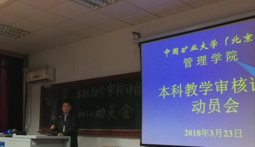 本网讯 2018年3月23日下午,管理学院开展本科教学审核评估动员会,教务处处长刘波出席会议,管理学院院长丁日佳、党委书记杨庆舟、副院长宁云才、赵学彬以及全体教职工参加此次会议,副院长汪文生主持会议。