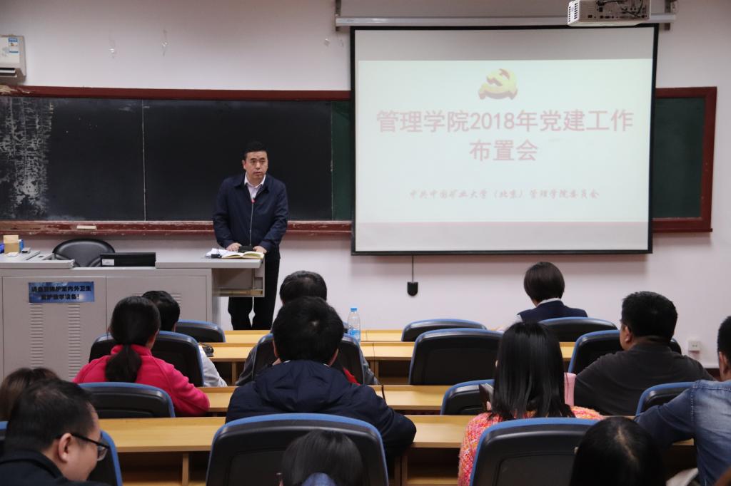 本网讯 2018年4月17日下午,管理学院于理化楼306举行管理学院2018年党建工作布置会,管理学院党委书记杨庆舟、校党委组织部尹娟老师出席会议,管理学院全体教职工党员、学生党支部书记参加会议。