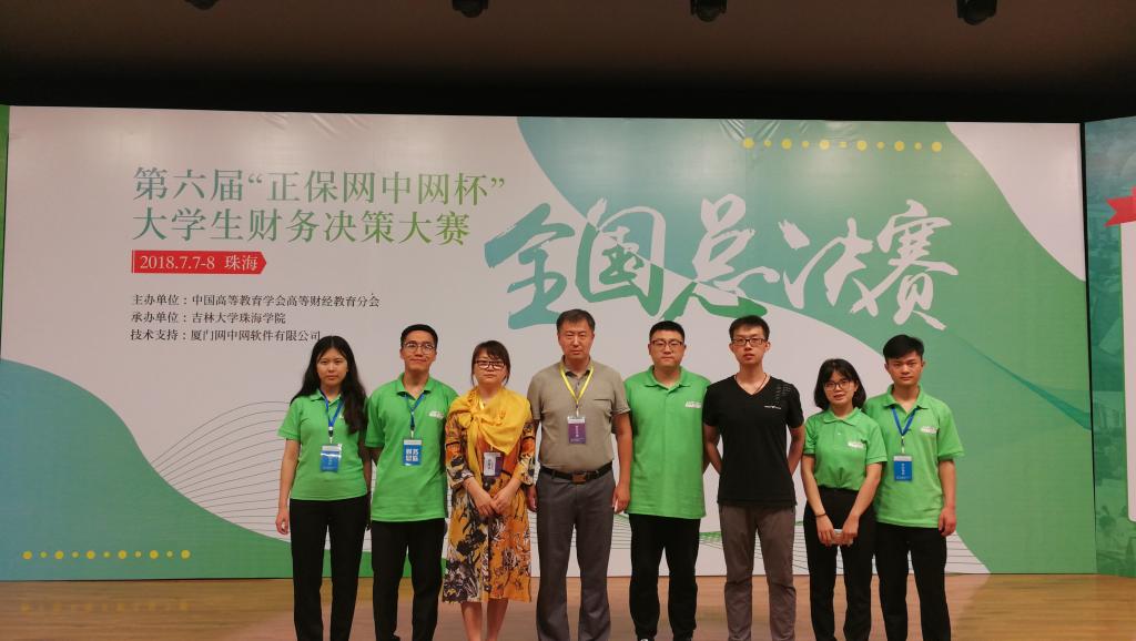 本网讯 7月7日,第六届“正保网中网杯”大学生财务决策大赛全国总决赛在珠海市正式举行,在此次历时两天的比赛中,我校管理学院陈志、刘子扬、姬耀文、龚永爽、刘浩然五位同学在管理学院张俊芝教授、王阳副教授的带领下,在导师助理门嗣淳的辅助下,发挥出色,荣获团体二等奖,两位带队同时获得“优秀指导老师”称号!