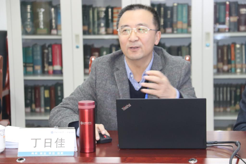 院长丁日佳对黄健柏教授的莅临指导表示欢迎,随后,从管理学院本科教学工作的定位目标、师资队伍、教学资源、人才培养、学生发展、质量保障及特色项目七个方面做了详细的汇报。