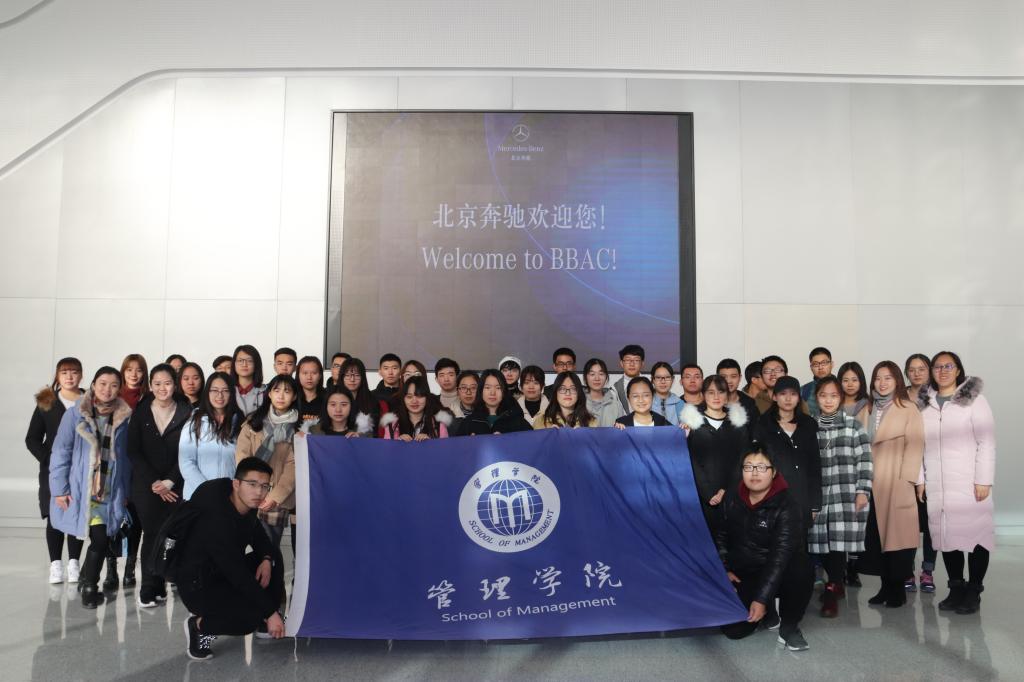 本网讯 为加强管理学院学生实习创新能力的培养,2018年11月27日,在学生工作办公室主任崔艳娜、团委书记李烁玮的带领下,2016级本科生共计40余人前往大兴区亦庄经济开发区参观北京奔驰汽车有限公司。