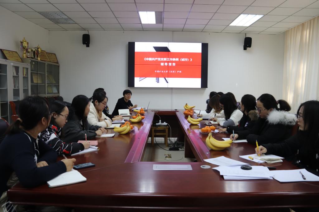本次交流会首先由尹娟进行《中国共产党支部工作条例(试行)》(以下简称《条例》)辅导讲座,尹娟从《条例》制定的背景和过程、《条例》的地位和特色以及条例的结构和内容三个方面为在场的老师和党支部书记讲解了《条例》的基本内涵。随后,支部书记进行了工作经验和难点的交流,参会各党支部书记结合支部建设和支部管理过程中的实际问题,充分交流自己在支部建设过程中的意见和看法。