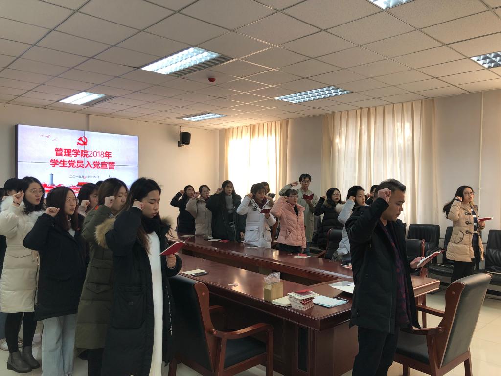 本网讯 2019年1月13在理化楼103会议室,学院举行了学生党员入党宣誓仪式。参加此次活动的有2018年下半年发展和转正的全体学生党员。