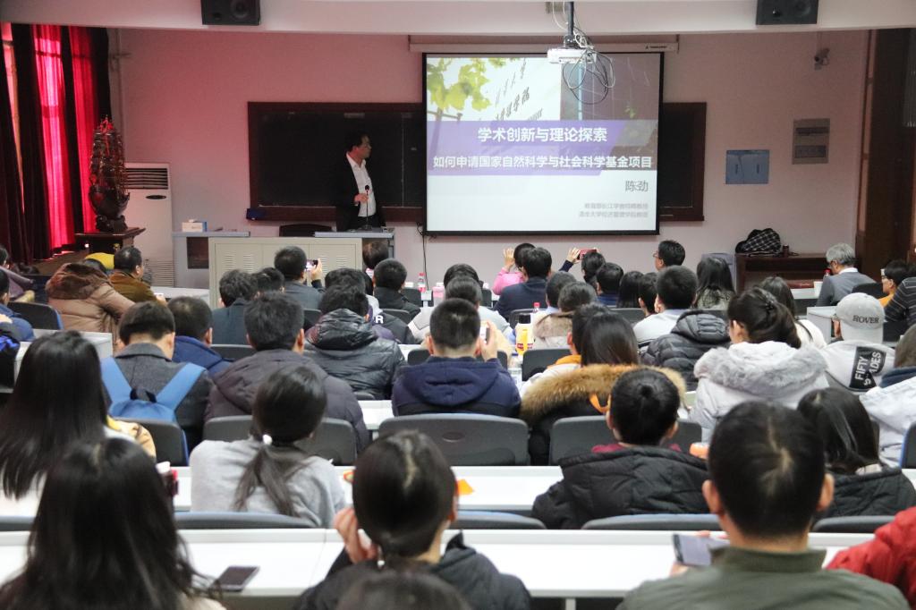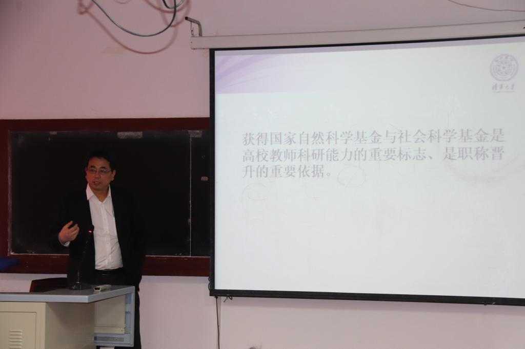 本网讯 为鼓励教师积极申报国家自然科学基金和国家哲学社会科学基金,提高我校两类基金的申报质量,科学技术研究院(以下简称科研院)和管理学院联合组织举办国家自然科学和社会科学基金项目申报辅导会,于1月14日下午,在我校理化楼304召开。国家杰出青年基金获得者、教育部“长江学者”特聘教授,教育部人文社会科学重点研究基地——清华大学技术创新研究中心主任陈劲教授应邀作报告。管理学院副院长赵学彬主持,科研院副院长钱晓红、国家自然科学基金和社会科学基金管理人员参会。教师、研究生约80人参会。