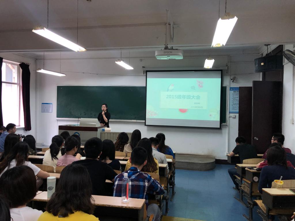 本网讯 2019年5月8日下午, 管理学院2019届本科毕业生年级大会在理化楼204举办。即将毕业的15级全体本科生参加了此次大会,15级辅导员李烁玮老师主持大会。