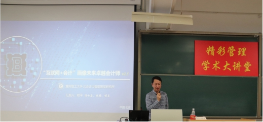 本网讯 2019年5月17日,管理学院系列讲座“精彩管理学术大讲堂”在教学楼107教室进行了一次精彩演讲,此次讲座我院有幸邀请重庆理工大学会计学院程平教授作为主要嘉宾,举办《“互联网+会计“画像未来卓越会计师》主题讲座,管理学院各系教师以及全校各专业200多名学生参加此次讲座,会计系主任张俊芝主持讲座。