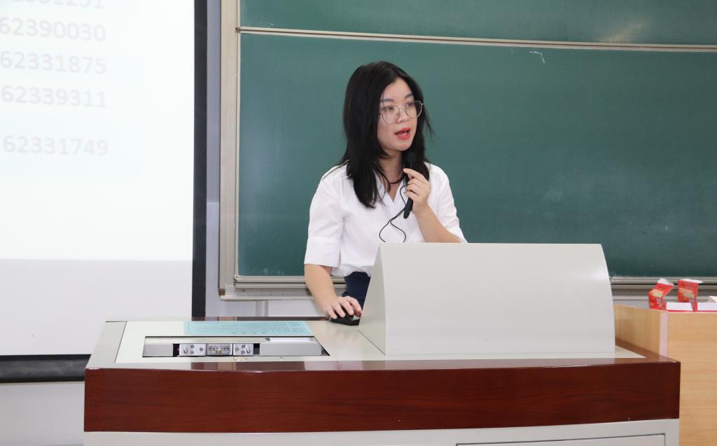 研究生辅导员陈慧昀老师给同学们详细介绍了研究生教学系统、选课、奖学金及成绩评定标准等注意事项。