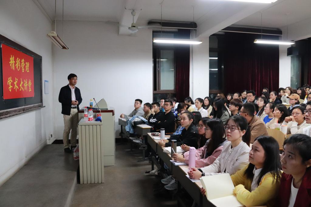 2019年10月12日晚,在民族楼204室,财政部全国会计领军(后备)人才张昕,应邀做客我校管理学院“精彩管理 学术大讲堂”,为师生们作了主题为《掌控风险、实现收益——合理规划财务结构》的精彩讲座,管理学院MPAcc教育中心常务副主任王阳以及与会研究生共同聆听了此次讲座。