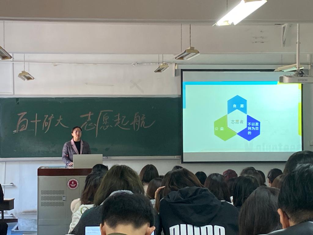 团委书记李烁玮主要介绍了志愿者岗位设置及工作职责,以及校庆工作的具体安排,并进行了最后的动员。
