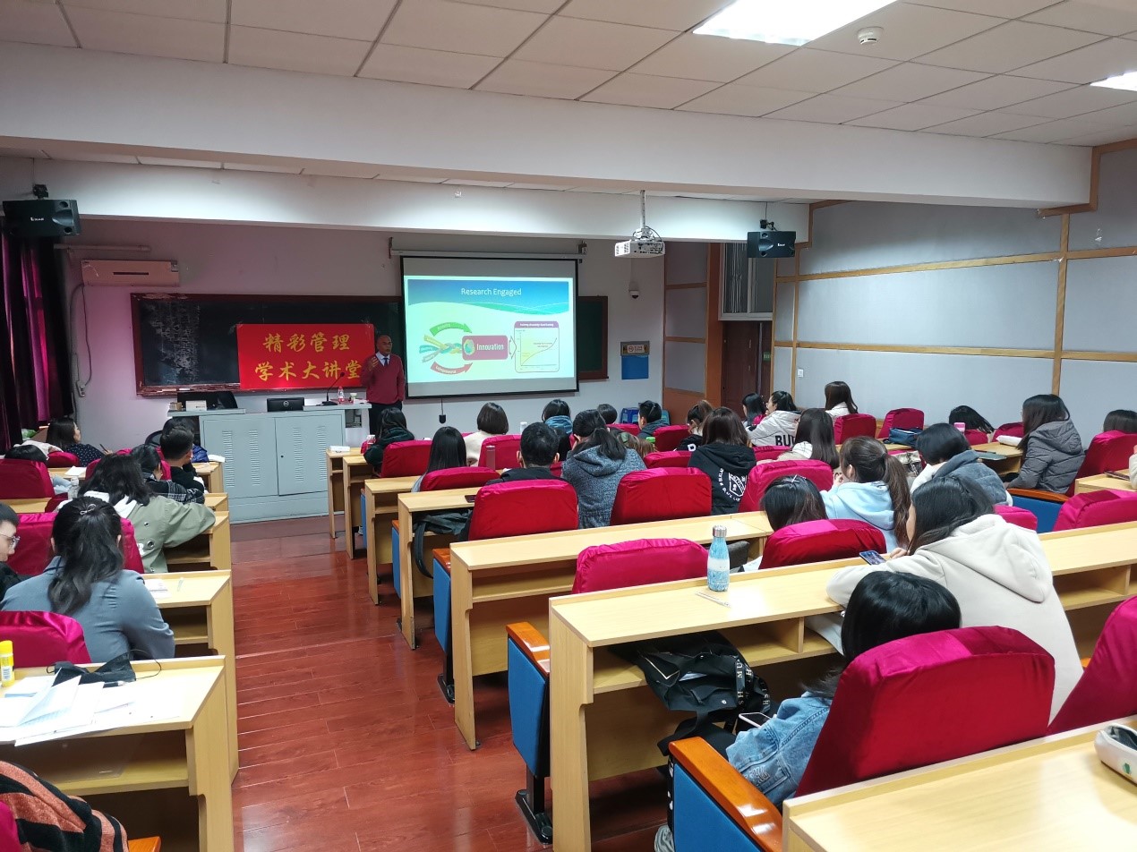 2019年11月11日上午,管理学院面向研究生的精彩管理学术大讲堂在管理学院306室举行。此次讲座中,中国矿业大学(北京)管理学院邀请了来自毛里求斯大学工程学院的丹尼斯教授向管理学院近百名研究生作了题为《迈向绿色城市》的主题讲座。