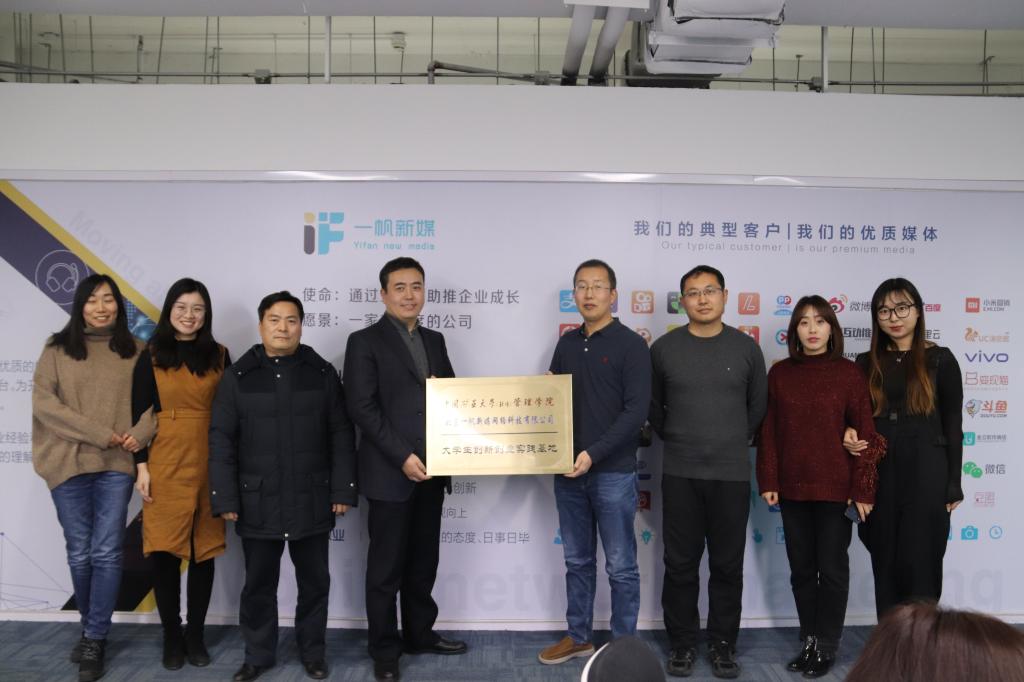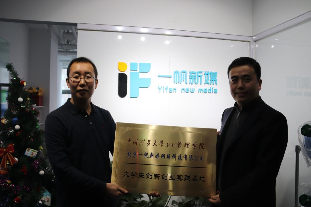 在一帆新媒总经理孙金涛及其管理团队的带领下首先进行了企业参观,杨庆舟向企业授牌,共建大学生校外创新创业实践基地。随后双方就企业的创办历程、发展前景、校企合作方式等方面进行了深入的交流。孙金涛提出企业目前处于快速上升期,人才需求量大,可以为学生提供实习就业岗位,同时企业员工有专业化管理技能培训的需求,杨庆舟表示学院愿意为企业开展工商管理专业培训提供支持,助力中小企业建设学习型组织。