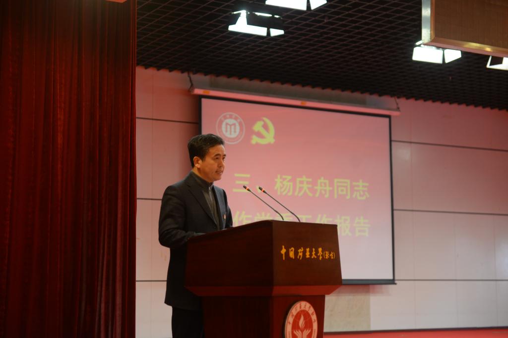 杨庆舟代表上届党委以《不忘初心,振奋精神,接续奋斗,努力谱写新时代管理学院事业发展新篇章》为题做了工作报告。报告将学院四年来在人才培养、学科专业建设、师资队伍建设、科学研究和社会服务、对外合作交流、思想文化建设、学生事务管理、党建工作等八个方面的工作成绩做出总结。