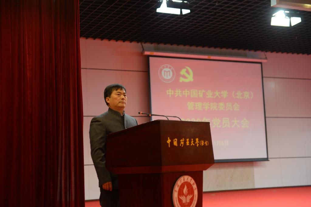 2020年1月8日上午,中共中国矿业大学(北京)管理学院委员会党员大会在科技会堂举行。校党委书记徐孝民、组织部组织员高来举参加会议,管理学院全体师生党员、党外教师代表近400人参会,学院党委副书记李邦三主持会议。