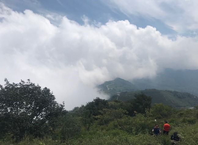 7:30鸣枪开跑,跟随着黄色路标的指引,开始25km的行程。这一天的三峰(鹫峰、阳台山、妙峰山)景色格外好,秋高气爽,温度适宜,还意外看到了云海景观。