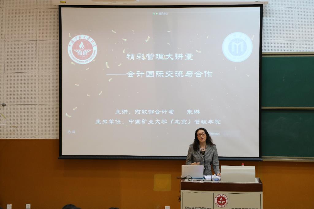 2020年11月21日晚,管理学院在沙河校区教1-329举办新一期“精彩管理”学术大讲堂系列活动,邀请财政部会计司朱琳博士,为同学们做题目为《会计国际交流与合作》的讲座。本次讲座以线上线下相结合的方式展开,由MPAcc教育中心常务副主任王阳老师主持,我院共有200余名研究生和本科生来到现场学习,此外,还有100余名非全日制会计专硕同学通过网络在线听取了此次讲座。