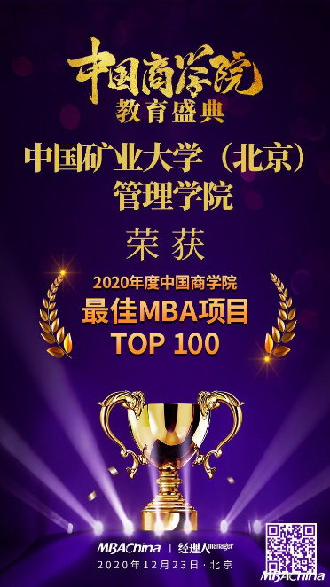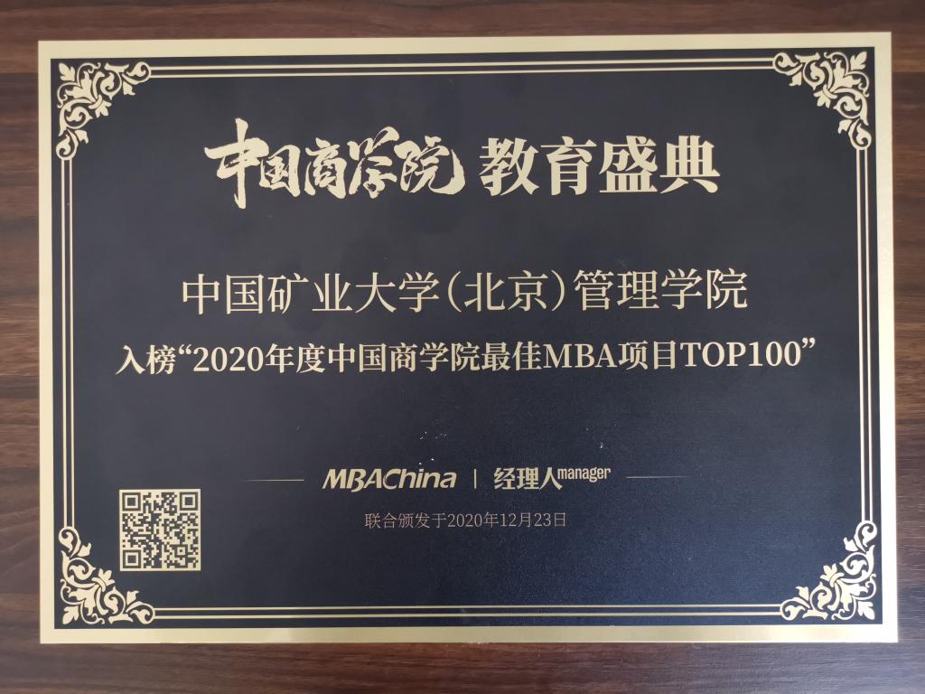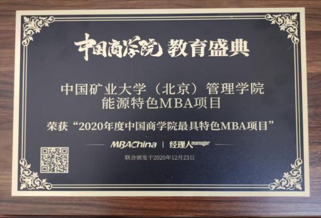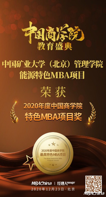 中国矿业大学(北京)管理学院于1998年开始招收工商管理硕士(MBA),是全国第三批MBA办学院校之一,成为当时教育部56所正式招收MBA的院校之一。近年来本着“培养具有能源特质、精英素养、理实兼修、开拓创新的卓越管理人才”的培养目标,通过双导师制、多样活动、创新实践、特色课程等方式,积极打造以专业硕士八大环节为主体,理论和实践为驱动,协同推进的MBA“一主双驱”协同培养模式。并基于我院优秀的教师水平和科研实力,借助我院众多校友资源、客座导师资源和实践基地资源,努力探索具有能源特色的MBA培养模式。此次三大奖项的获得是对中国矿业大学(北京)管理学院MBA教育的充分肯定。