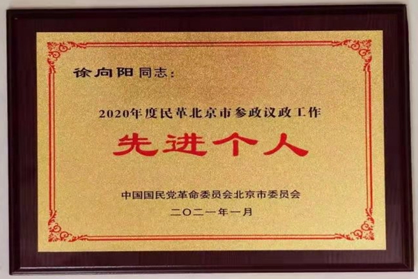 2021年1月9日,中国国民党革命委员会北京市第十五届委员会第六次全体会议在北京召开,会上表彰了2020年在参政议政、民主监督工作中做出突出贡献的民革北京市委党员。我校管理学院徐向阳教授被授予“2020年民革北京市参政议政工作先进个人”称号。