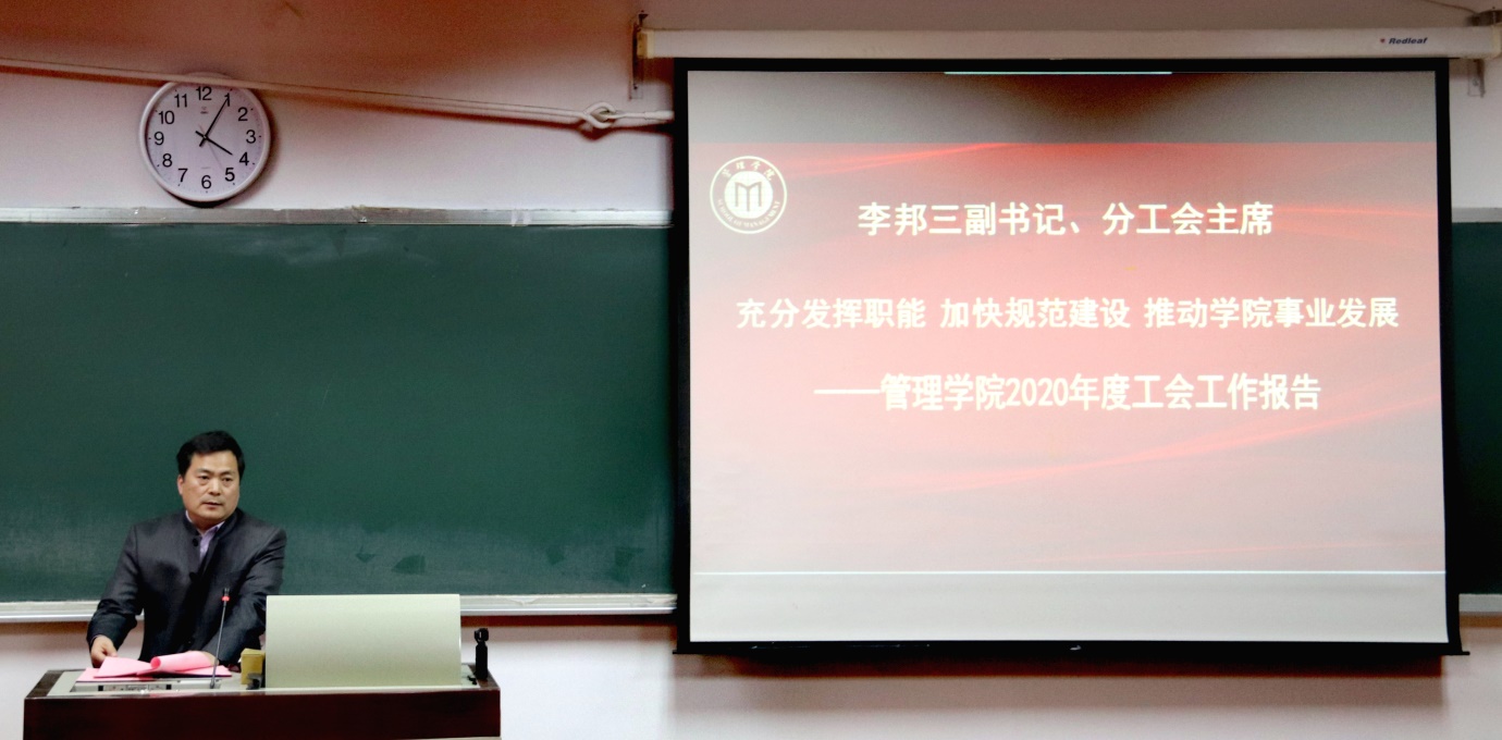 院党委副书记、分工会主席李邦三作管理学院工会计2020年工作报告