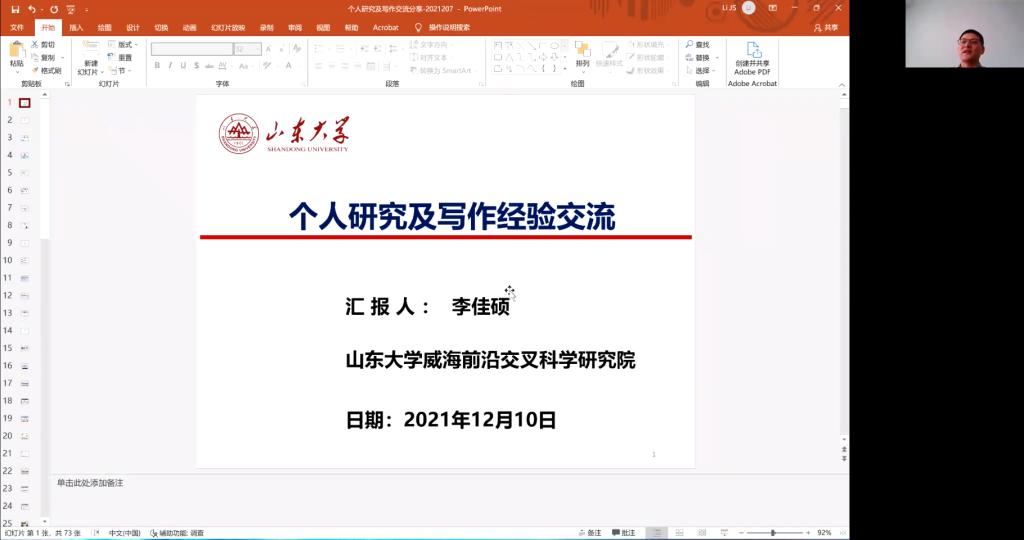 图1 李佳硕研究员介绍个人研究成果及写作经验