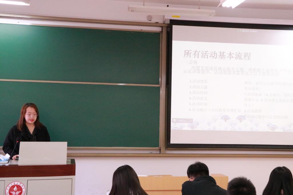 接下来,20级优秀团支书蔡印同学为大家介绍了团支书的日常事务,如团日活动与青年大学习等,让各位团支书更加了解自己的工作内容。