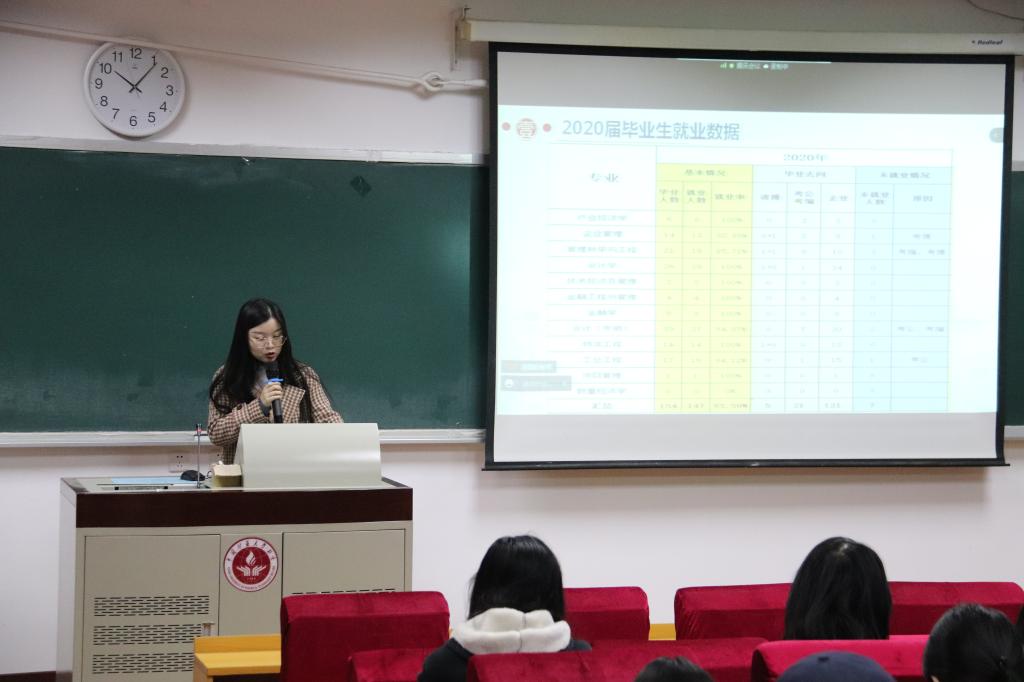 2022年10月28日,中国矿业大学(北京)管理学院2023届全日制硕士就业政策宣讲会在理化楼206成功召开。此次会议线上线下同时进行,由管理学院学工办主任、硕士辅导员李烁玮主讲,参会学生共计200余人。