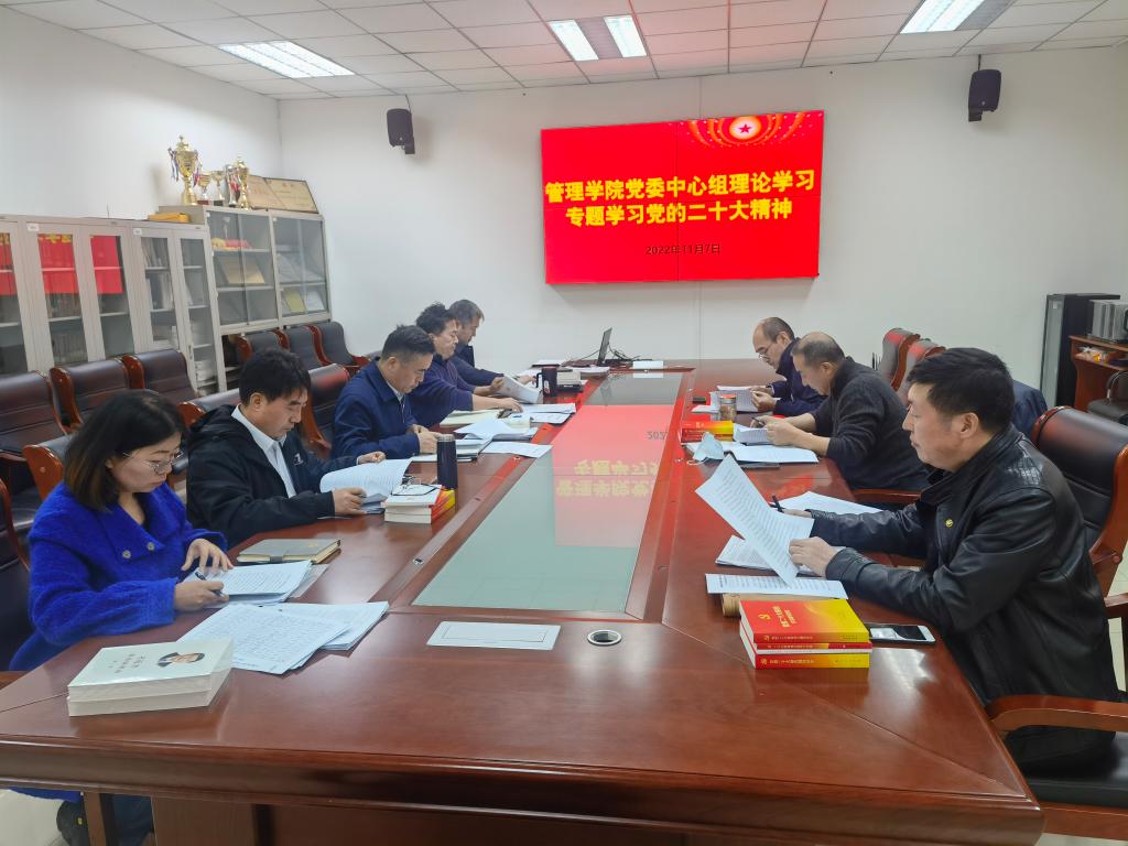 11月7日下午,管理学院党委中心组开展本学期第3次理论学习,重点学习了《中国共产党第二十次全国代表大会关于十九届中央委员会报告的决议 》、《中共中央关于认真学习宣传贯彻党的二十大精神的决定》、《中国共产党章程(中国共产党第二十次全国代表大会部分修改,2022 年 10 月 22 日通过)》、《关于教育系统深入学习宣传贯彻党的二十大精神的通知》,学习由管理学院党委书记主持,管理学院院长、党委副书记丁日佳、党委委员刘海滨做主题发言,学院党委委员、纪委委员参加学习。