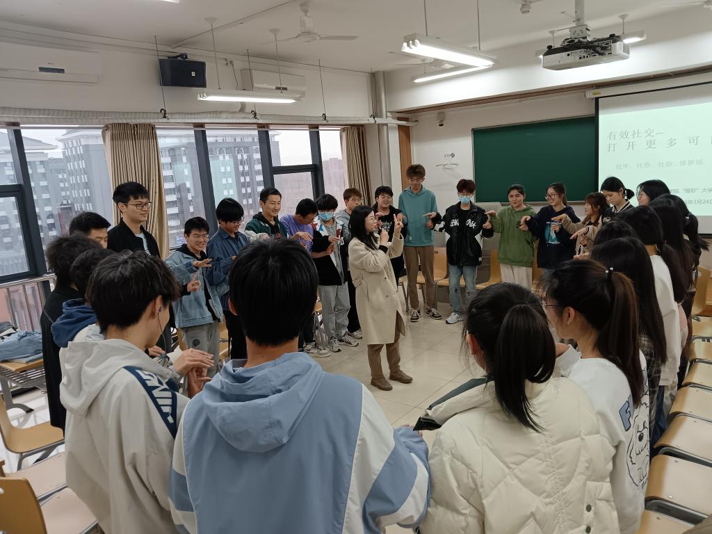 春季学期,“橙彩”大学生成长工作室以“有效社交——打开更多可能”为主题开展团体辅导活动。由特邀心理健康讲师潘昀彤、管理学院崔艳娜、李烁玮老师带领7个新生班级开展团体活动,引导学生正确认识人际沟通,增强沟通能力,活动中同学们坦诚相待、分享倾听,进一步增加了彼此的了解,加速班级凝聚力的形成。