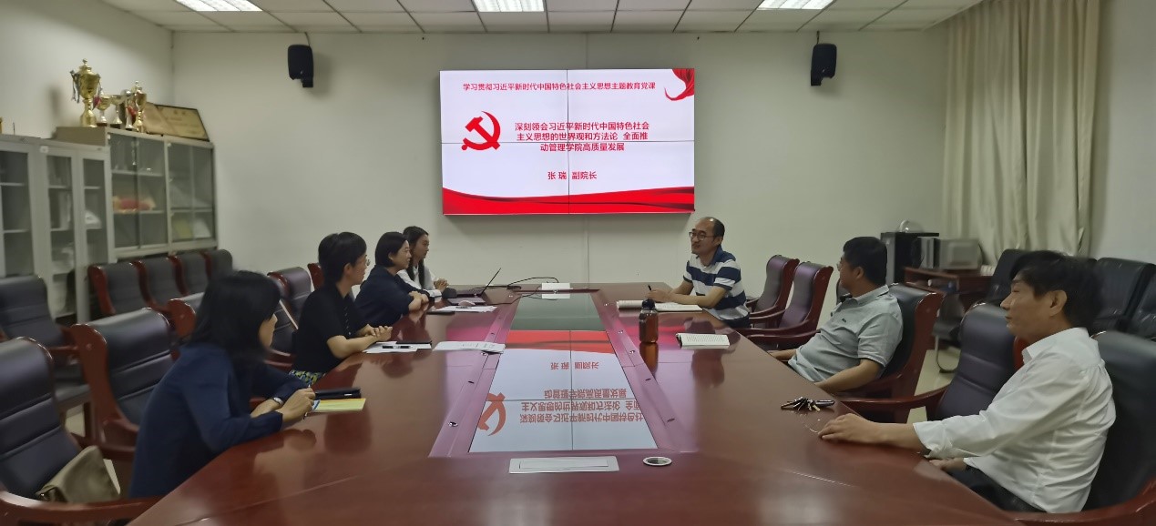 按照学校学习贯彻习近平新时代中国特色社会主义思想主题教育工作要求和学院安排,2023年5月19日上午,管理学院副院长张瑞教授在管理学院103会议室,讲授题为《深刻领会习近平新时代中国特色社会主义思想的世界观和方法论 全面推动管理学院高质量发展》的专题党课。工商管理系教师参加了党课学习。