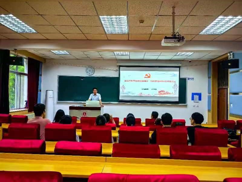 按照学校学习贯彻习近平新时代中国特色社会主义思想主题教育工作要求和学院安排,2023年5月20日上午,在理化楼206教室,管理学院副院长赵学彬以《坚定不移贯彻新发展理念,持续推进MBA高质量发展》为题,为MBA学生党支部成员讲授主题教育专题党课,12名MBA学生党支部党员在现场认证聆听专题党课。
