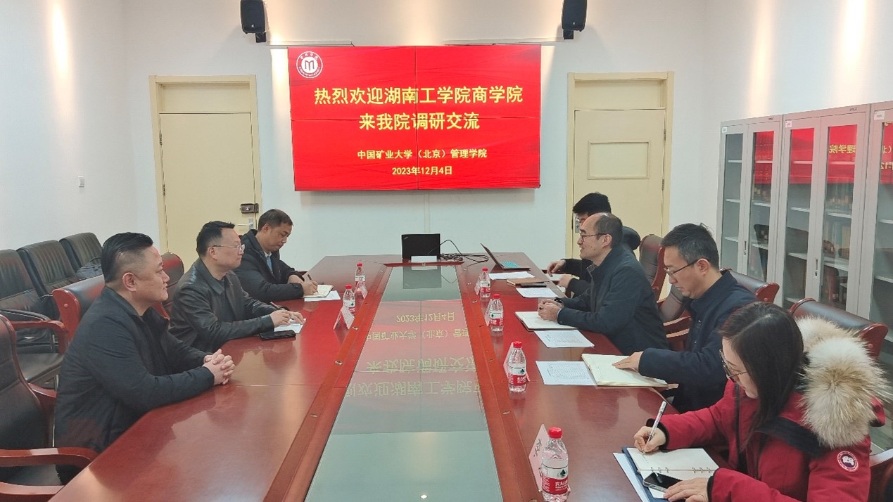 2023年12月4日上午,湖南工学院商学院院长王小兵、副院长黄飞一行赴我院进行大数据专业建设的调研工作,全面交流大数据管理与应用专业的专业建设、课程设置、大数据平台等情况。管理学院院长张瑞、副院长黄辉、管科系主任张永亮、管科系支部书记李远参与交流。