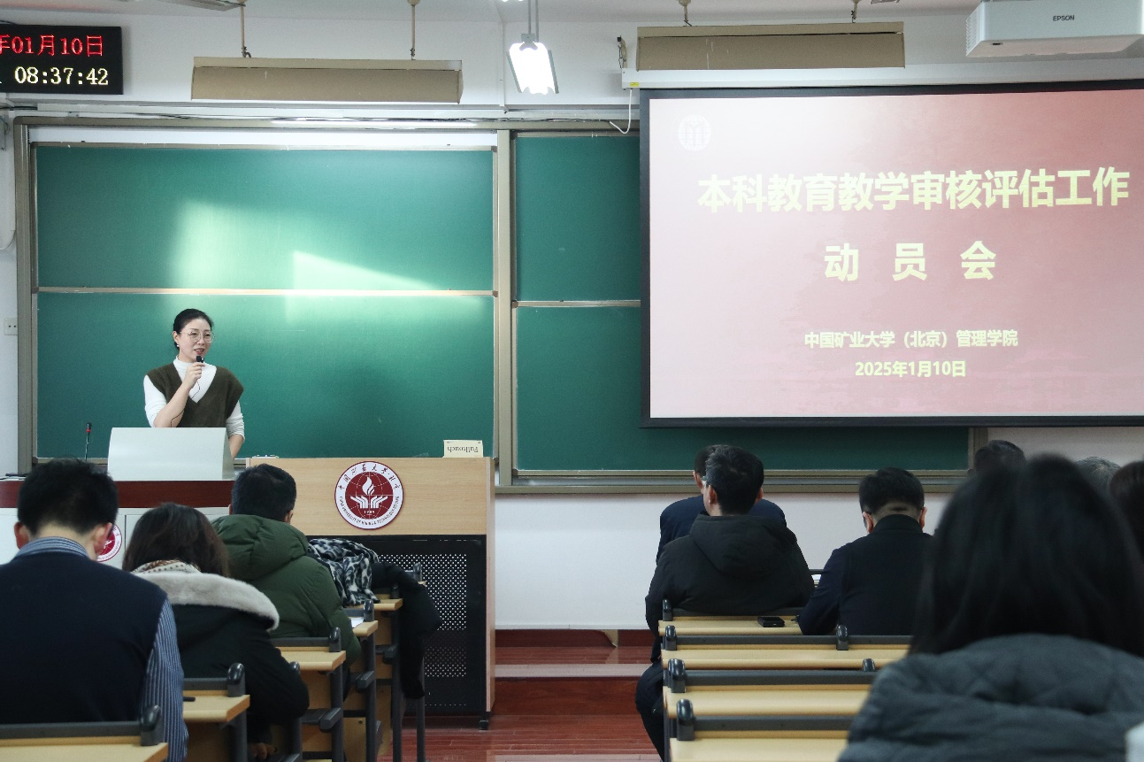 为贯彻落实教育部新一轮本科教育教学审核评估工作,2025年1月10日上午,管理学院在教学楼201教室召开本科教学评估启动动员会。院党委书记高洁、院长张瑞、党委副书记李邦三、副院长黄辉、副院长杨洋出席会议,管理学院全体教职工参加会议。会议由高洁主持。